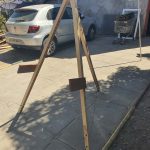 Und der Bogensport sollte ja nicht zu kurz kommen. Nachdem der chilenische Zoll dann die von mir gekauften Bögen freigegeben hat, fing die Arbeit an. Auch hier gab es keine Scheibenständer zu kaufen. Also einen Plan gezeichnet und … der angefragte Schreiner hatte dann doch keine Zeit für den Bau. Aber er hat mir eine Kappsäge geliehen und so habe ich halt 2 Scheibenständer selber gebaut.
